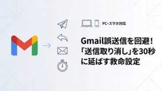「しまった!」と焦る前に。Gmailの送信取り消し時間を、デフォルトの5秒から最大の30秒に延ばす設定方法を解説。誤送信してもキャンセルできる余裕を持たせ、ミスを未然に防ぐための画像付き設定ガイドです。