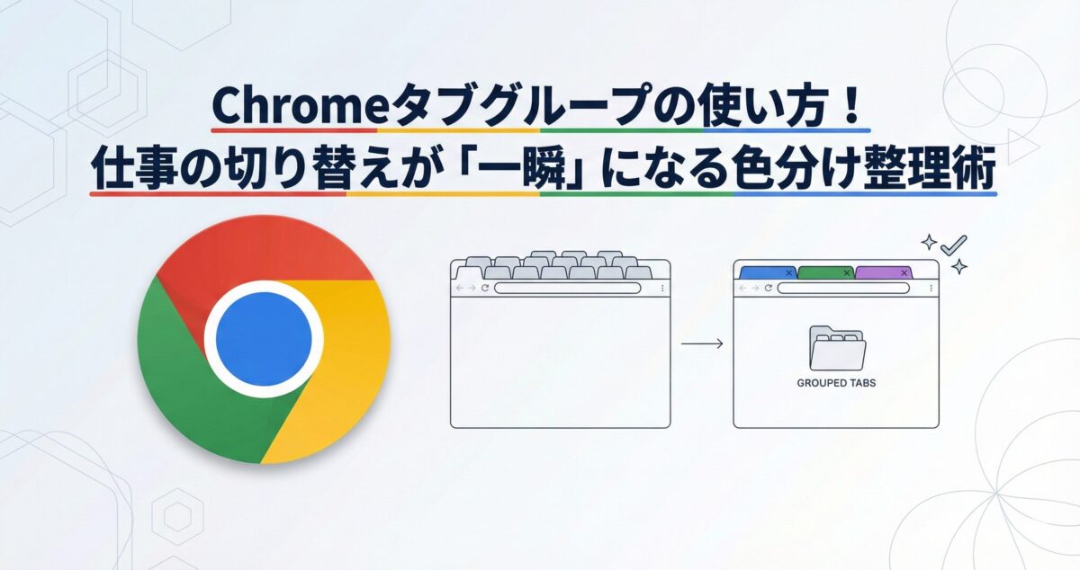 この3つを意識するだけで、Chromeの画面は驚くほどスッキリします。 「タブ探し」という無駄な時間をなくし、目の前の作業にフルコミットするために、ぜひ今日からタブグループを活用してみてくださいね!
