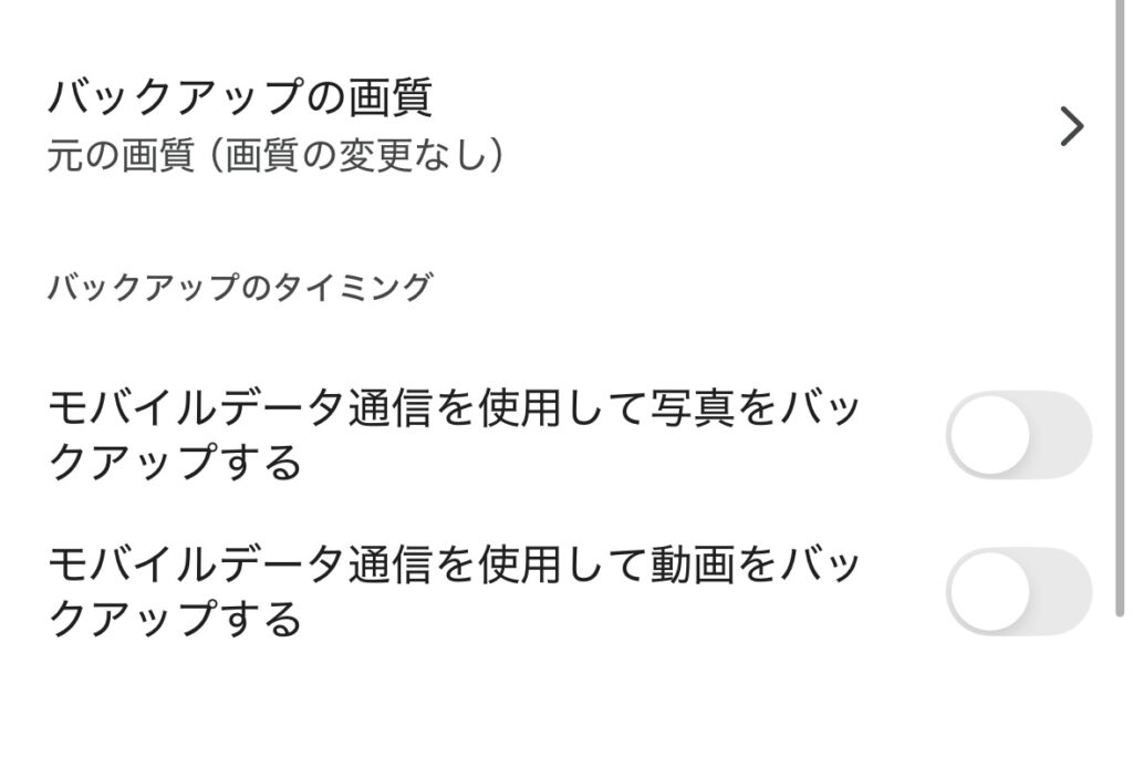 【手順】モバイルデータでのバックアップを「オフ」にする